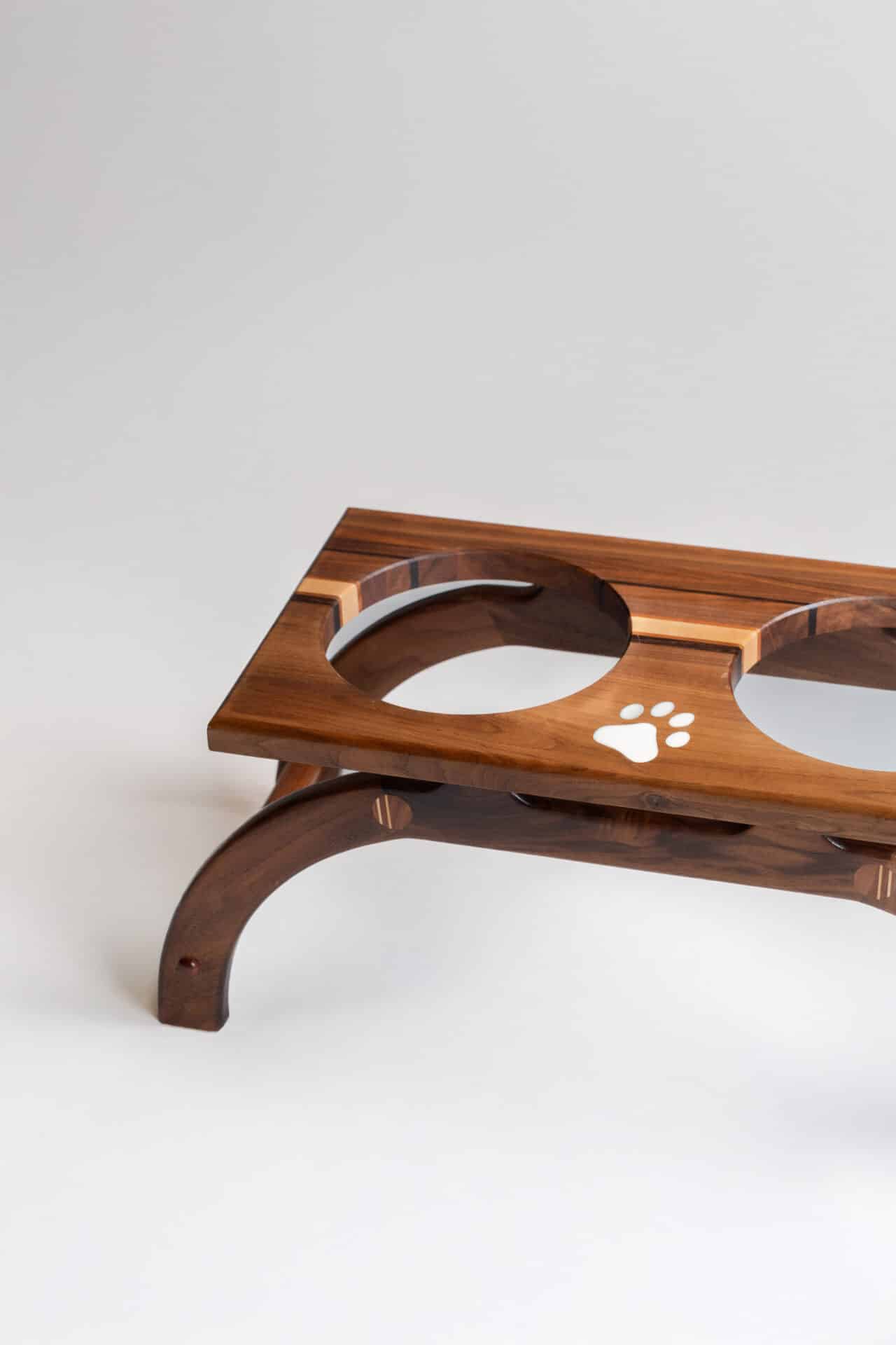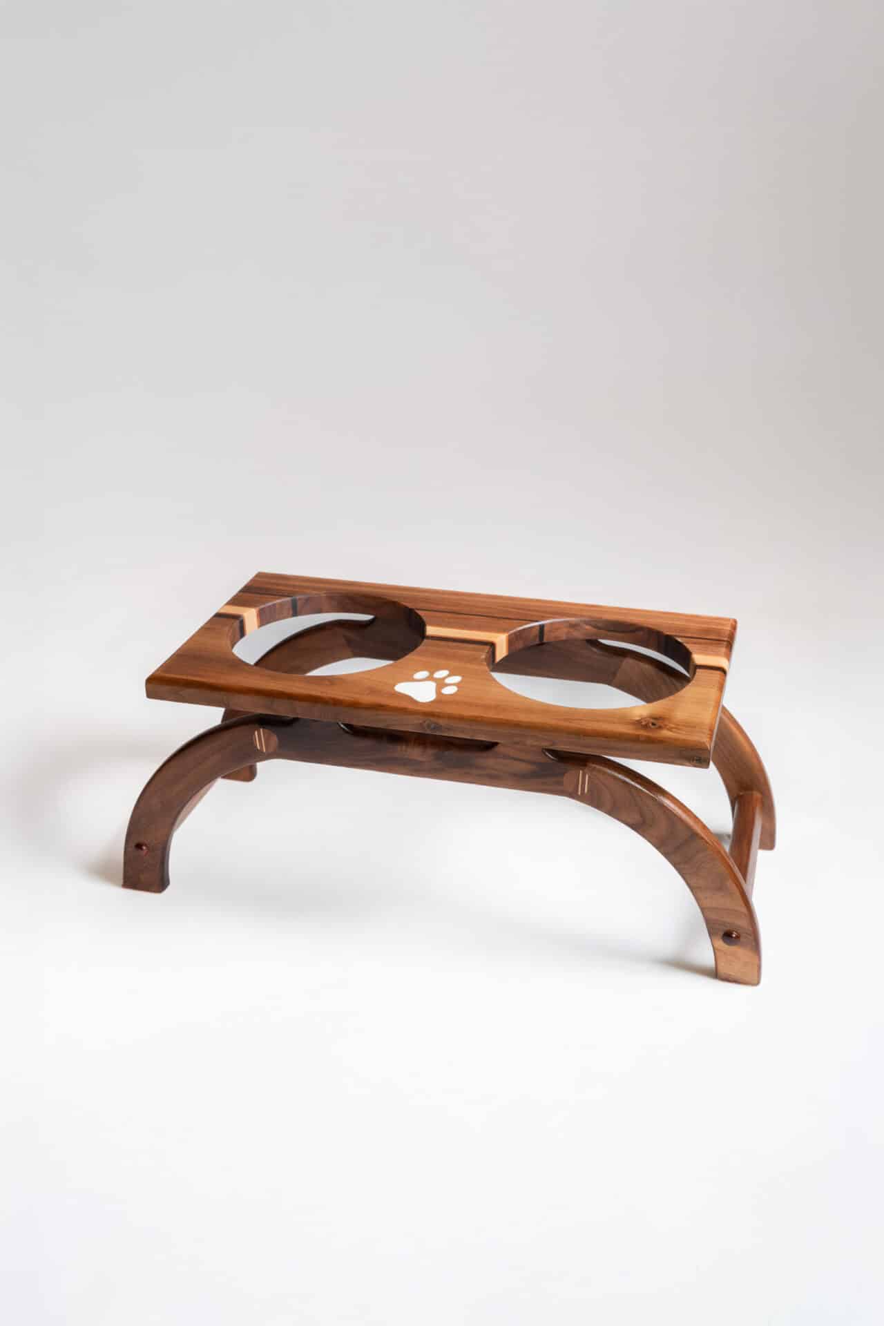 This raised pet feeder is thoughtfully handcrafted from solid walnut and designed as a functional piece of modern furniture rather than a typical pet accessory. The sculpted, arched legs create a sense of movement and stability, while the elevated feeding surface promotes a more comfortable and natural eating posture for your pet.