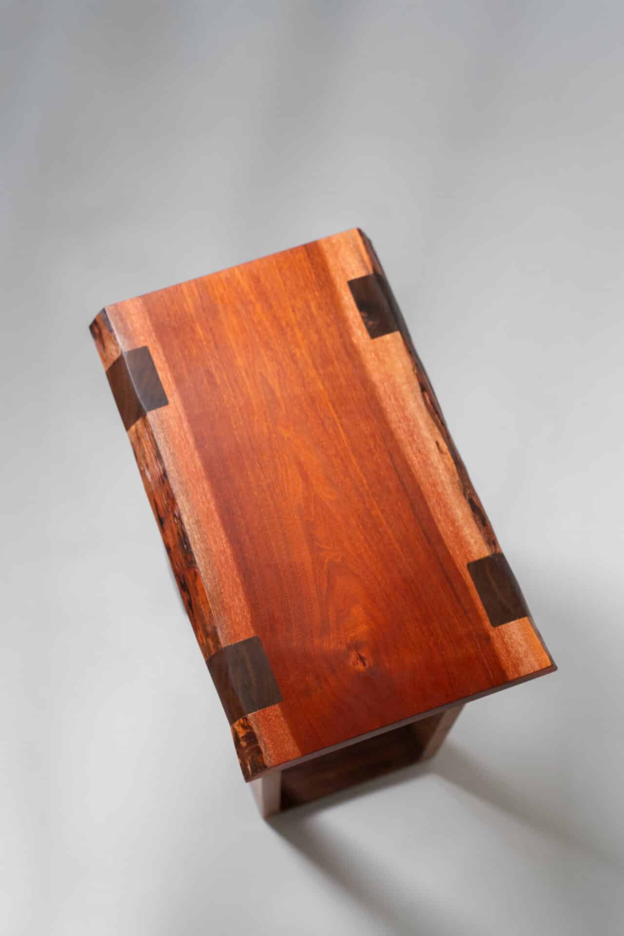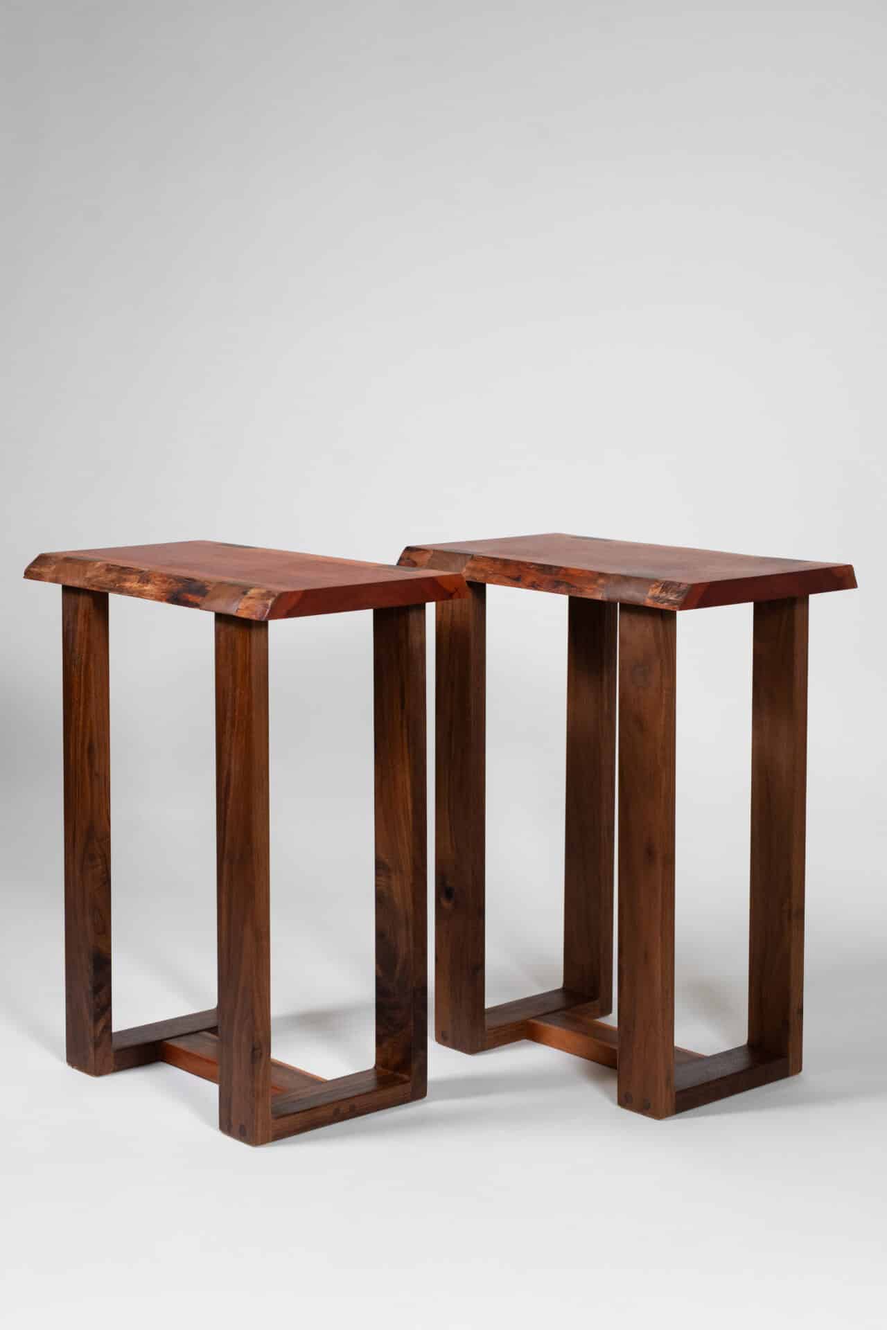 This modern side table is crafted on Cherry or entirely from solid walnut, showcasing the wood’s rich color and warm grain. The live-edge top brings a touch of organic character, while the clean geometric base adds a sleek, contemporary feel. Perfect as an accent table, plant stand, or end table, it blends artisan craftsmanship with timeless design—making it a beautiful and functional addition to any space.