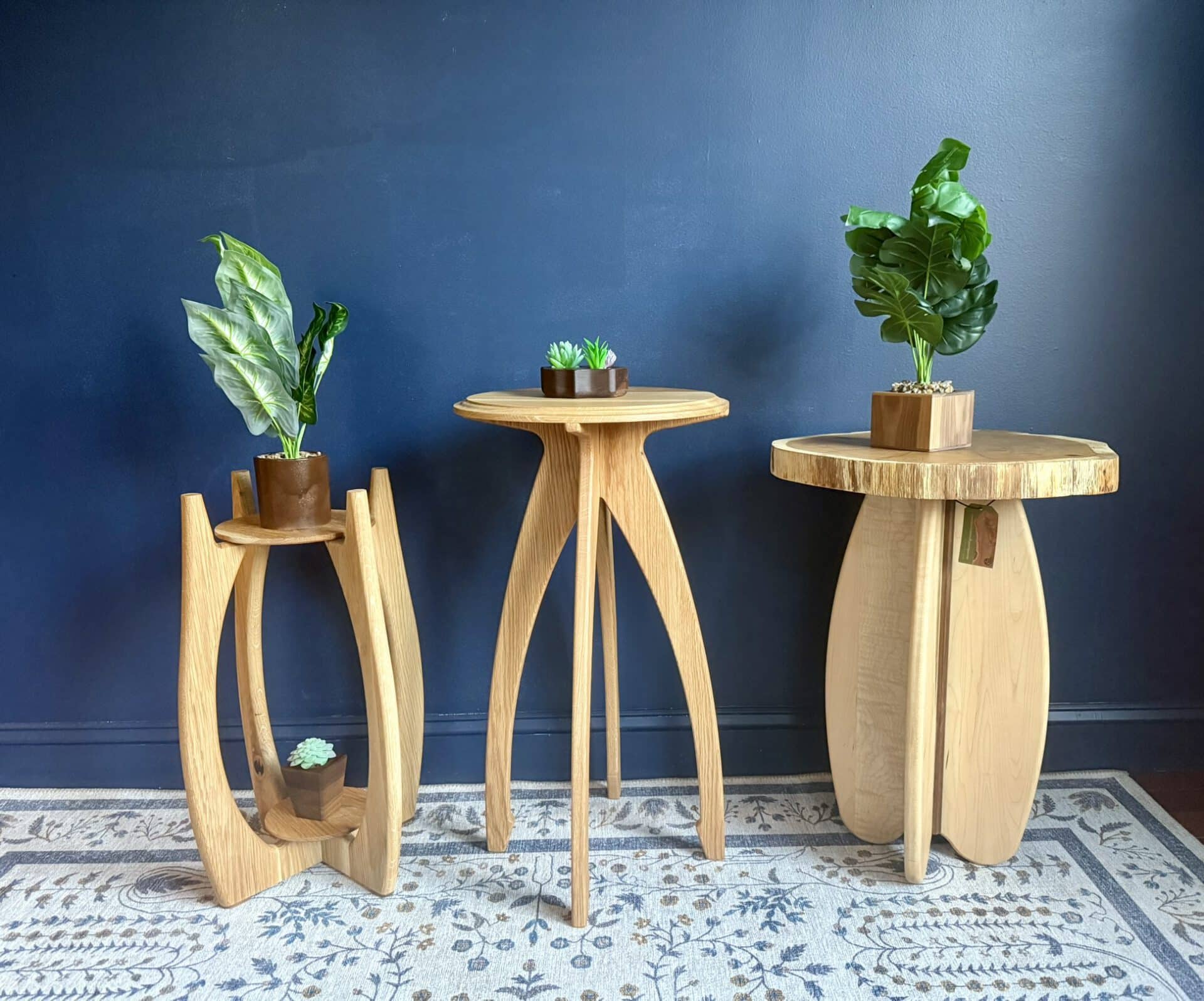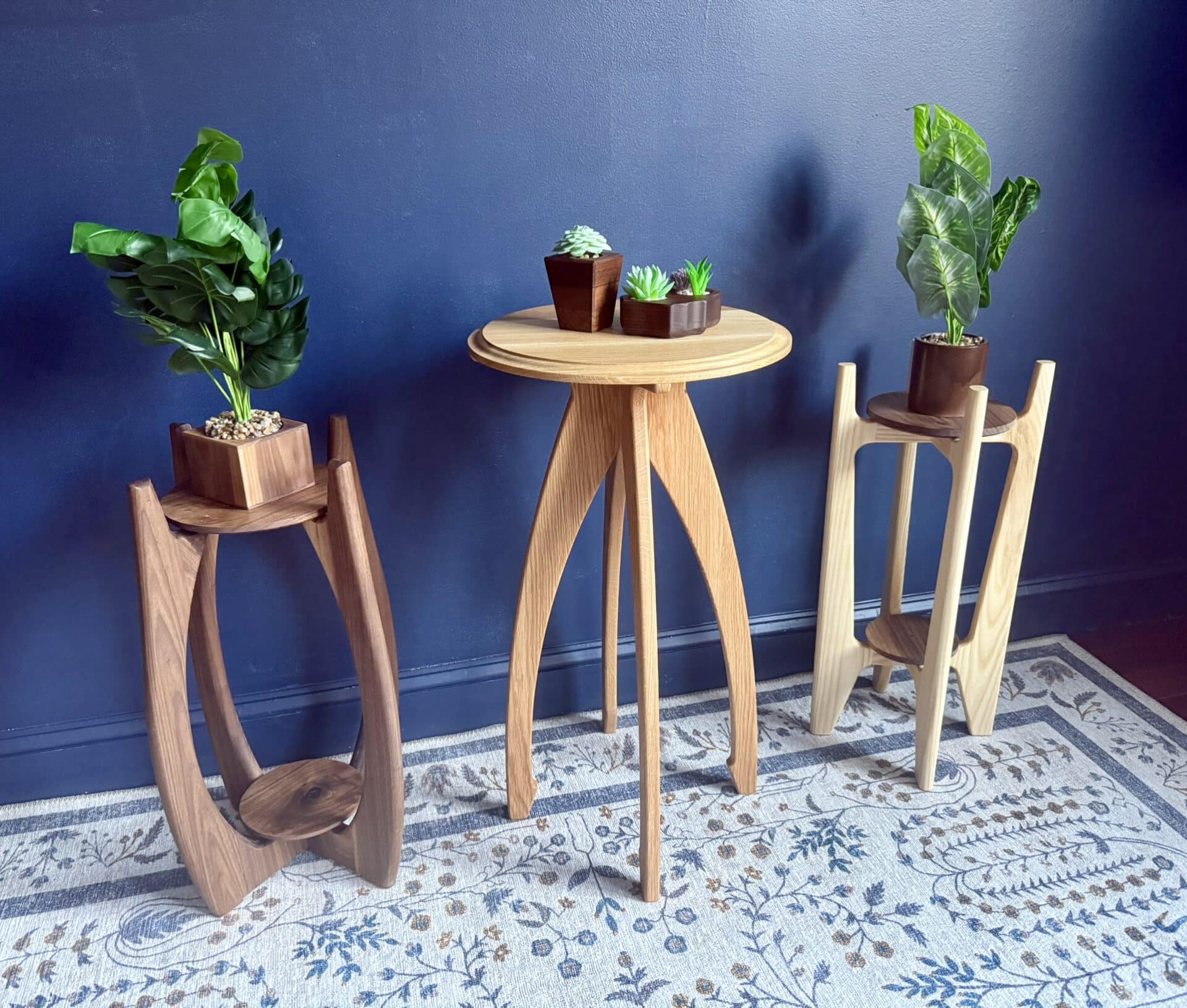 Handcrafted from solid white oak, this modern planter stand features elegant curved legs. Its mid-century–inspired form highlights the natural grain of the wood while providing a sturdy base for plants or decorative accents. A perfect statement piece for any living room, entryway, or office.