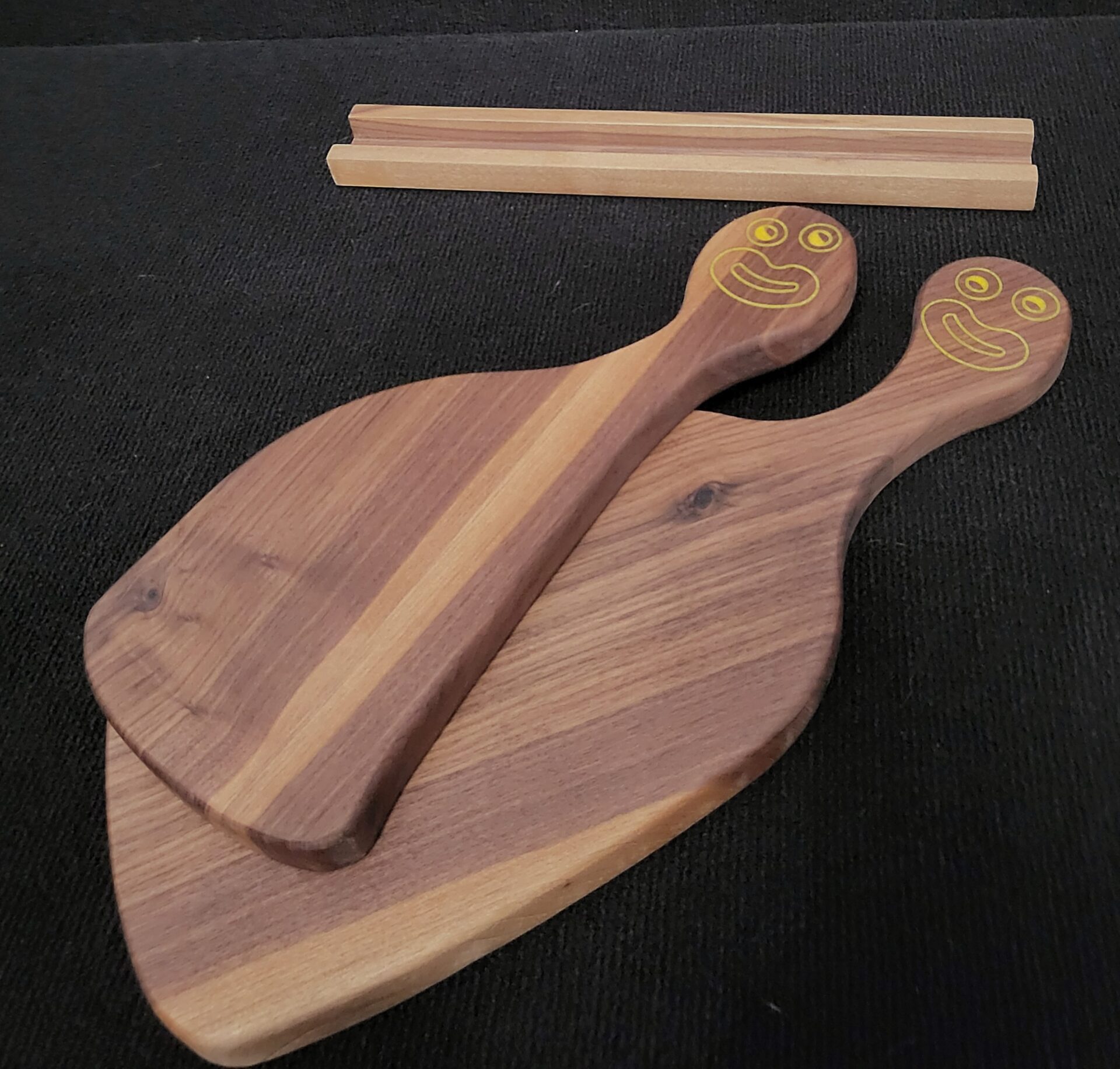 Each cutting board is handcrafted using premium hardwoods and designed to stand out as both a functional kitchen tool and a piece of art. From geometric patterns to playful character shapes and bold inlay designs, every board showcases thoughtful craftsmanship and attention to detail. Built with durable end-grain construction, these boards are gentle on knives and made to last for years. Whether used for everyday prep or displayed as part of your kitchen décor, they bring creativity, quality, and originality to any home.